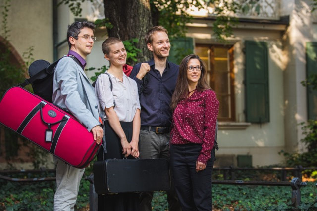 Mattieu Romanens, ténor ; Aliénor Woltèche, vièle à archet ; Catalina Vicens, organetto ; Baptiste Romain, vièle, rubebe, cornemuse et direction