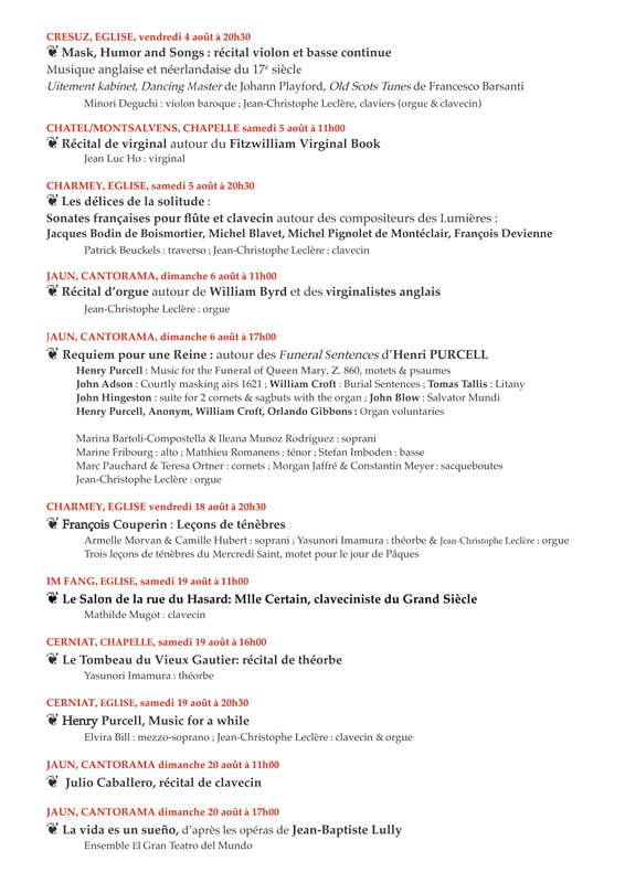 ​Du 6 au 22 août 2021, 16 concerts de musique ancienne et baroque sur 6 folles journées (2 week-ends) dans le Val de Charmey.